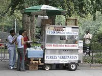 Food carts and trucks are trendy, cool and fabulous! Foodie magnets. There's a huge number of very popular carts/trucks here in NYC. Most of them are not vegan, however.