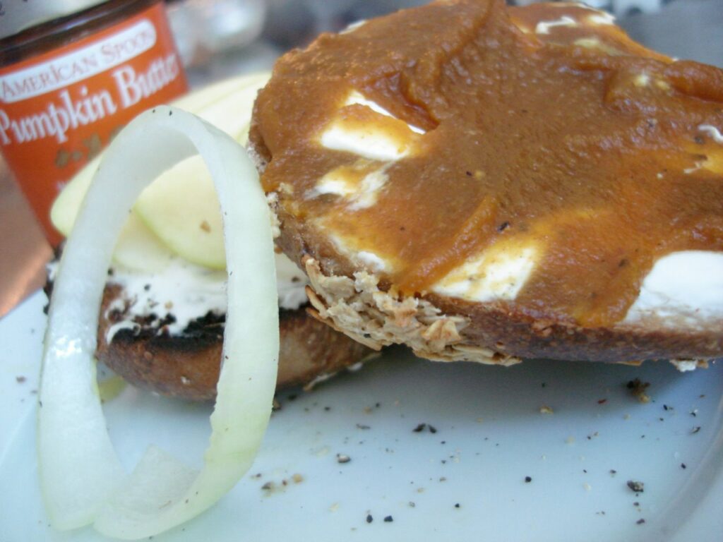 So I was craving some pumpkin butter on my seven-grain bagel.