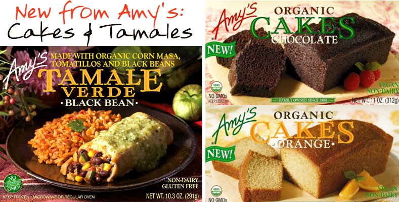 NEW! I recently saw Amy's new Tamale Verde with Black Beans at Whole Foods and was very excited. Then I noticed from the Amy's website that they are also coming out with two new dessert products, cake: chocolate and orange. Nice.
