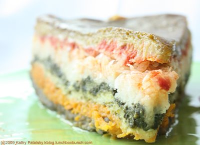 NEW! At Le Pain Quotidien: When I saw the delightful addition of a six veggie quiche on Le Pain's menu, I got so excited I almost spit out my soy latte. A traditional quiche is usually very high in saturated fat and calories due to the cheese, cream, butter and egg ingredients. But this vegan quiche has only 370 calories!