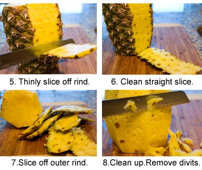 Here is my Photo Slideshow of how-to chop a pineapple! Learn this skill!