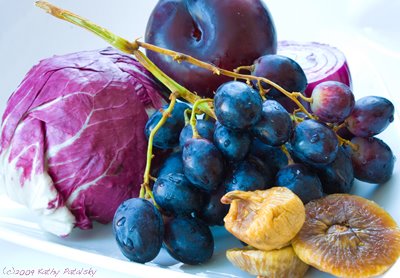 Here's my recipe for a purple-themed dish: Purple Power Antioxidant Salad. It's pure purple bliss. This salad has a complex Asian-influenced sweet-bitter-tangy flavor you'll love! Fruit. Veg. Flavor.