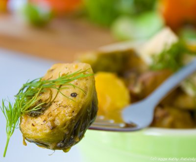 "Cheesy" Dill Potatoes & Citrus Braised Brussel Sprouts.