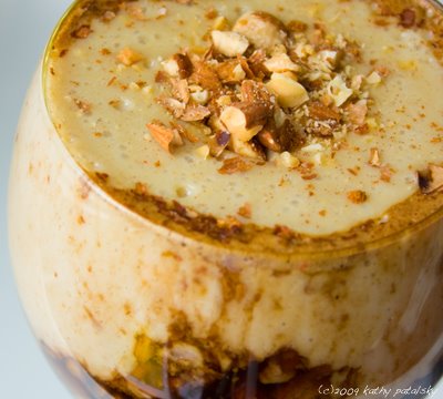 Tofu is the perfect ingredient for making amazing vegan pudding that can have the thickness of a mousse. When I am craving a rich and elegant dessert, I whip up a few of my Diva Tofu-Chino Parfaits. This rich parfait combines cinnamon vanilla and spicy chocolate pudding with a thin spike of creamy espresso (or substitute chai tea if you have nixed coffee). A crushed almond and crumbly 'cookie' crust layer complete the dessert. Click ahead for the decadent recipe...