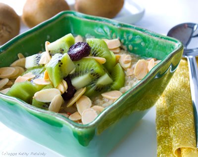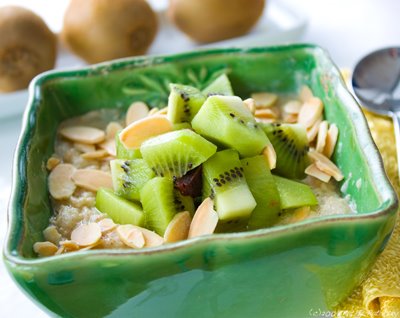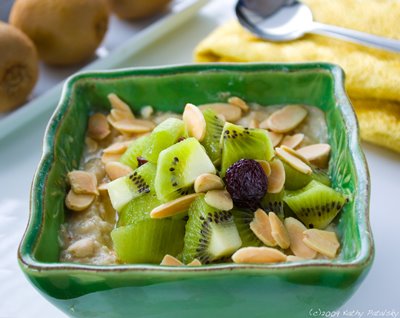 Click ahead for this Kiwi-Bing-Almond oatmeal recipe....