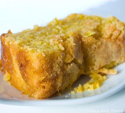 Corn Cake #2: Loafed Bread. Same flavors, only less sweet moist texture. A bit crumbly due to the higher amount of corn meal and whole corn and less liquid. Spicier due to serrano pepper. Able to slice into squares or loaf slices.