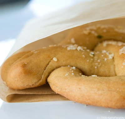 Better Ingredients. Better Pretzels. I use 100% Whole Wheat flour in my yeasted pretzels. I also use exotic sea salt from the dead sea. Rich in minerals. But any natural sea salt works fine. (Those bleached-looking white cubes I see on the street carts scare me). I use extra virgin olive oil and a very small amount of agave syrup to sweeten these golden twisted gems. And the mustard? Top notch spicy deli mustard. All natural. None of this glows-in-the-dark yellow mustard. I wish there was a sidewalk cart that sold these delicious snack treats! I'd buy them!