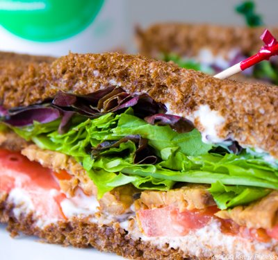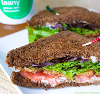 Taste Test: The BLT, and a raspberry black iced tea. To-go please. Yum. Very light, but just enough good stuff to fill me up and keep me moving on a Saturday afternoon. The tempeh bacon or facon, is amazing. They must prepare it with some smoky flavors because it is just that-smoky and crisp of the outside. I also love the tea. It doesn't taste bitter or overly sweet at all. You can add your own raw sugar or agave syrup however you'd like. My husband tried the vegan cheese sandwich. It comes open faced. Very good, but the BLT is better if you have a thing for tempeh or smoky flavors. The cakes are a-m-a-zing! Huge. Fluffy. Vegan. They also have yummy cookies, muffins and breads. My gingerbread was pretty good. Good as a tea side for sure.