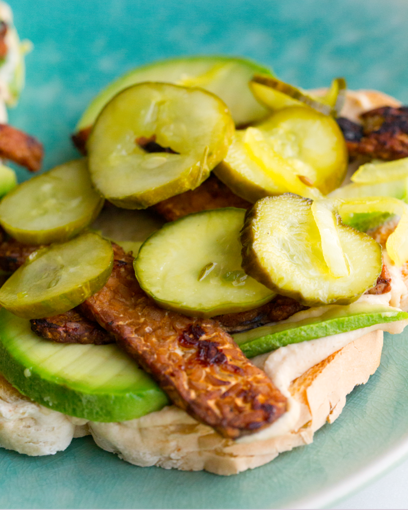 * Bread and Butter Pickle Tempeh Bacon Toast