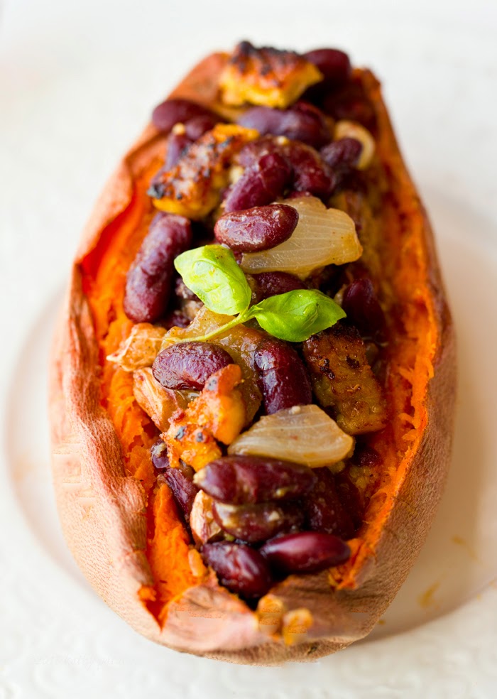 * Chili-Bean Stuffed Sweet Potatoes