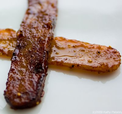 I just had tempeh bacon for breakfast yesterday and wish I'd seen yours first! I can't believe how thinly you managed to slice it--any tips on how to get it that thin?