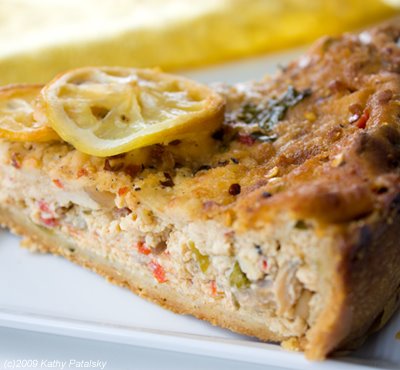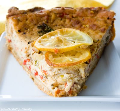 Vegetarian Quiche was one of may favorite recipes as a little girl back in California. I remember visiting the local French Bakery on Sunday mornings with my family. Sweet mood? Order a Sticky Bun. But if I was in a savory mood, I'd order the veggie quiche. It was soft and creamy with a buttery crust. The roasted bell peppers and zesty cheeses were an explosion of flavor in my mouth. But sadly, since going vegan, I hadn't yet found a good vegan quiche-anywhere! Until now. My Vegan Tofu Quiche with a bright blend of veggies, cheeses, spices, pine nuts and fresh herbs is filled with nutrients and flavor, and minus all the bad stuff we traditionally find in quiche, such as cream, butter, traditional cheese and egg yolks. This recipe is a must try for quiche lovers of all diets, veg or not...