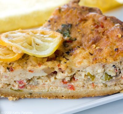Mushroom Scallion Tofu Quiche with Herbed Grain Crust