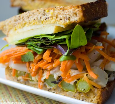 I am vegetarian, not vegan, and one of my biggest complaints is that it is impossible to get a good veg sandwich in a restaurant. Either they are totally boring, or totally over-wrought and fattening. I love the look of your sandwich!