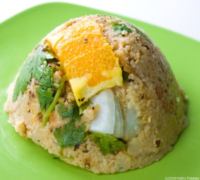 When you think couscous has molded-about 5-10 minutes sitting, flip over plate.