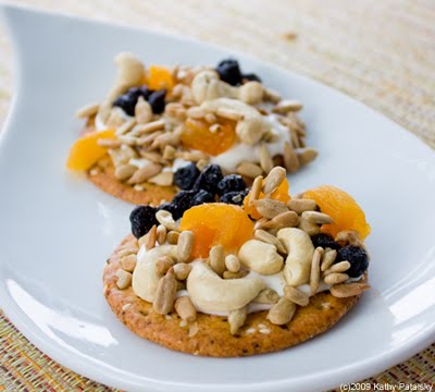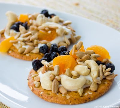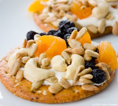 Frosting and Sprinkles. Ask your kids if they want some frosting and sprinkles for a snack and they will probably jump out of their car-seat. Well that's what we have here! It's a cream cheese maple 'frosting' spread topped with dried fruit, nut and seed "sprinkles". The thin consistency of the cream cheese spread really does make it look like frosting. It's all the fun of cupcakes with a healthy twist. And my how-to method makes this a not-so-messy craft you can eat in the end.
