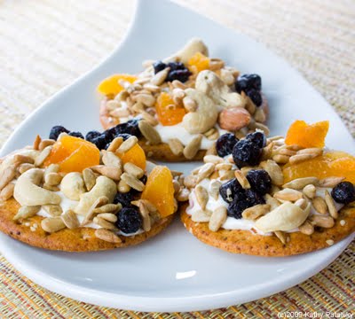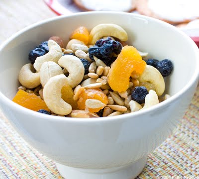 Healthy Trail-Mix. Getting kids to eat trail mix from a bowl might be a bit tricky. There's certainly nothing exciting about a bowl of dried fruit and nuts. But with so much good stuff in trail mix, you've got to give it another chance with the kids. Nuts are dried fruit are packed with fiber and nutrients. Here is a fun way to make trail mix into a cracker snack. Remember it's not 'trail mix' it's trail mix sprinkles! If you really want a treat-throw a few dark chocolate chunks into the trail mix bowl.