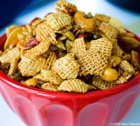 Salty snacks and after school sports go hand in hand. (You lose a lot of sodium when you sweat!) You know the kids are going to grab chips, pretzels and anything that's salty and high in carbohydrates. I remember the classic 'Chex party mix' always being a big hit at sports events. So I decided to amp up the nutrition level of this the 'hexagon-shaped' party mix. It's healthier than the original and even more delicious. Great for pre or post workout munching.