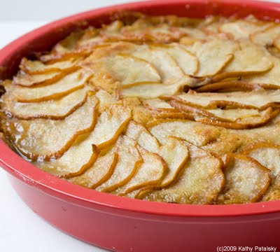 I made the pear cake this morning. This has a great combination of flavors. Unfortunately I don't think mine cooked all the way through (although it still tastes wonderful ;-)). The edges moved away from the side of the pan, but when I cut into it later, the part of the cake underneath the pears seemed uncooked. Do you think I should put it back in the oven (or does the suggestion make you cringe?-I'm not an experienced cook!)