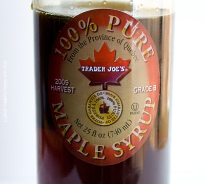 Trader Joe's Grade B syrup. Made in Quebec Canada. For weeks now something had caught my eye in the maple syrup section of Trader Joe's. It was my beloved sweetener, only the label read Maple Grade B syrup. Desiring only the highest in quality of syrups, I always grabbed the Grade A maple syrup. But last week I was feeling adventurous. So I reached out my arm, grabbed the Grade B syrup and crammed it in my crowded cart. My husband looked at me like I was nuts. "Grade B? Why would you buy that? Get the good stuff." He grabbed a Grade A in its shiny glass bottle. I shook my head and sped off down the aisle without him. I was an adventurous foodie, and this Grade B stuff needed a try. I'm such a syrup rebel.