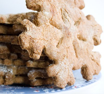 6. Back to the cookies: Roll out your dough on a surface with a ratio of 2 parts flour, 1 part powdered sugar. Since this dough is so delicate, and I was making such large cookies, I actually hand pressed out the dough (using my snowflake cookie cutter) for about 2 cookies at time. Use whatever process works best for you. Note: I actually used a pancake mold from Crate and Barrel, snowflake shape. Loved it. Makes pretty pancakes too.