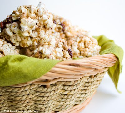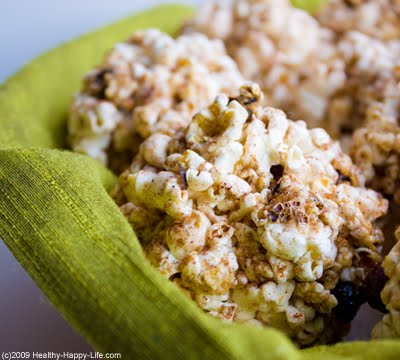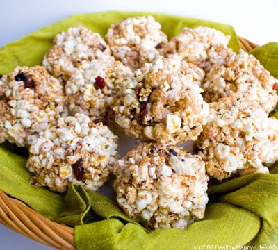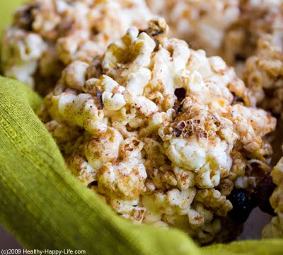 Popcorn Balls Made by Hand. Literally. I must confess, I know nothing about candy making, sugar temperatures and 'candying' anything. So creating a sticky solution to mold and mend these balls of popcorn was all an experiment for me. But to my surprise, it worked! These Sticky Sweet Popcorn Balls are fun to make and fun to eat. 100% vegan and filled with good holiday add-ins like dried currents, cinnamon and maple syrup. Kids will love getting 'sticky' to make these. And shhhh, but there is a heaping sprinkle of flax seed meal in there too. Get popping...