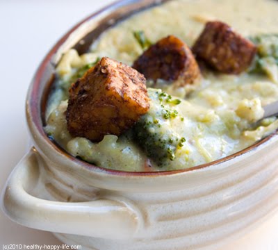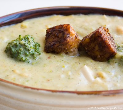Broccoli Jack Soup with Map-otle Tempeh Croutons