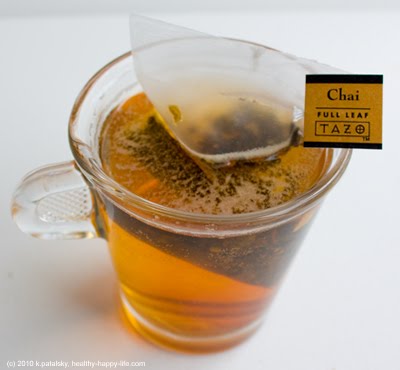 1/26 UPDATE: I just had an amazing at-home soy green tea chai latte. Ingredients: 1 zen TAZO tea bag, 1 chai TAZO tea bag, 1 cup soy milk, 1 cup chai tea concentrate OR water + 1 tablespoon agave syrup, dash of cinnamon, dash of cayenne. Spoonful of soy foam on top. Soooo delicious! Adding plenty of milk and side flavors removes the bitterness from the Starbucks chai tea bag. Delicious! Energizing and zen-filled.