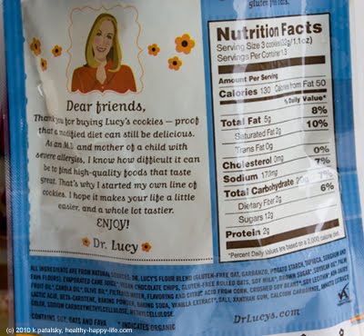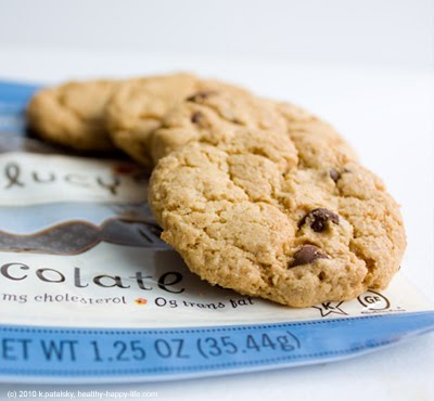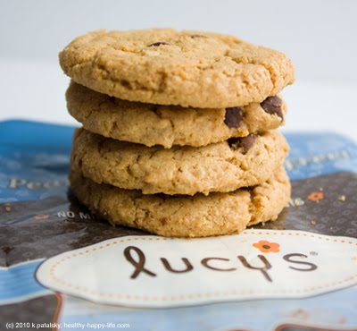 Lucy's brand vegan cookies were the lucky company to get Starbucks to sell their snacks. Vegans all over Twitter and Facebook have been buzzing about the new vegan cookies. But is there really cause for buzz? I was hoping for a super healthy, fresh, warm, chewy vegan cookie. But no such luck. Just a bag of store-bought looking crisp cookies. The taste: like Famous Amos chocolate chip cookies - only vegan and gluten free. Nut free too. Very tasty, but not "homemade" tasting. Not chewy or warm or soft or delectable. Just a nice sweet tasty dessert snack. The nutrition: 173 calories per bag. 4 mini cookies per bag. I was a bit annoyed when I saw that 3.6 out of the 6.6 total grams of fat per bag were saturated. 3.6 grams of saturated fat per bag is not my idea of healthy. The oil used is a mix of organic soybean, olive, palm fruit and canola oil. And the vegan chocolate chips in the ingredients just said "vegan chocolate chips" so I don't know what went into the chips. There is 3.6 grams of protein and 3.6 grams of fiber per bag. Not bad. I like the almost 4 grams of fiber, but that still didn't win me over. Sodium is about 9% RDA per bag. Not great at all. That's more sodium than in the bag of nuts I bought!