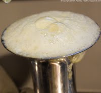 Pineapple Foam. It's a mysterious thing, the pineapple foam. But oh my gosh, "it's alive. It's alive." Anyone who has juiced a pineapple knows about "pineapple foam" When you crush and squeeze a pineapple, a peculiar white frothy foam boils up from the fruit chute. And I'm talking a lot of foam! It overflows my juicer and spills out all over my counter. But somehow I press on and finish juicing my pineapple - lots of white foam in the juice bin as well. I don't call it pineapple juice. It's really a pinapu-ccino.