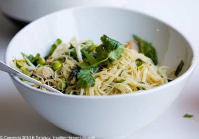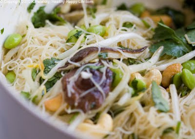 Bowl-ing for Nutrients. This salad is packed with protein from the tofu and edamame. Plus it's loaded with antioxidants from the spinach greens and fresh cilantro. And don't forget the nice handful of sliced shiitake mushrooms and Maifun rice noodles - they are lots of fun! I've even thrown in a creamy-sweet wasabi dressing recipe. Add more wasabi and fresh ginger to everything for an extra spicy kick to the flavors. I am in love with this light, cool noodle salad recipe. Try it!...