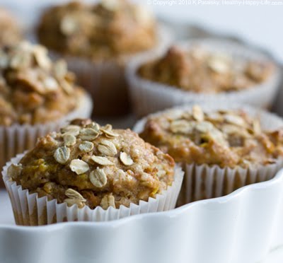 7. Line muffin cups or lightly grease with oil. Fill cups. You can also make a loaf by using a bread pan. Sprinkle a pinch of sugar/oats over top each muffin or loaf. For muffins: bake at 400 degrees for 22 minutes. For loaf: bake at 425 degrees for 40 minutes. *I made 12 muffins and a small loaf with this batter. I froze the muffins and they unfreeze like a dream*