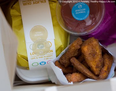 Eating green is an easy trend to grasp: reduce your consumption of animal products or go veg, buy local, support local farmers and purveyors, buy organic if possible, grow your own produce if you can, try to reduce your trash output, recycle and eat seasonally. But the green gimmick of "Carbon Neutral" fast food left my head in a tilt, a confused squint in my eye. I was curious to try the newbie veg food on the block.
