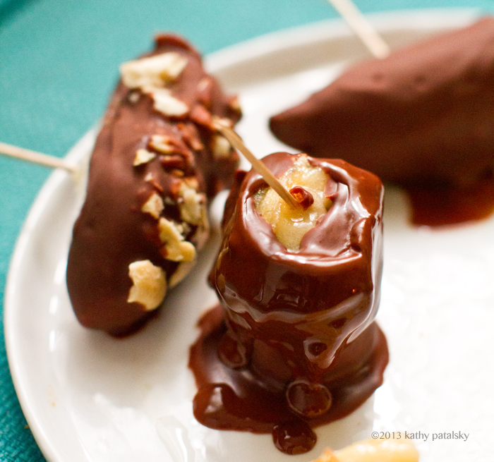 Thank goodness the books were not distributed with the typo on the cover! But even if they had been, you'd be surprised how many printing mistakes are out there and people don't even notice. Anyway, spring seems to be getting a very late start in many parts of the country (it's snowing outside RIGHT NOW!) so perhaps the new release date will be perfect; when some of us will be warmed up and ready to slurp your delicious smoothies 24/7. BTW, you've outdone yourself with this Peanut Butter Chocolate-Dipped Frozen Banana Shake. WOW!