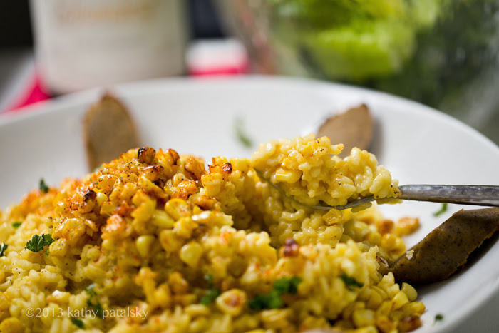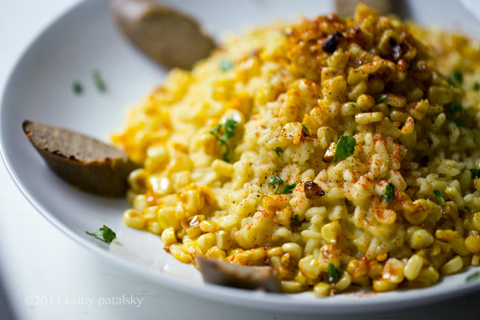 Sweet Corn. Sweet summer corn becomes even sweeter when you roast it in the oven and it supplies the perfect compliment to the nutty, velvet-y, creamy risotto rice. This combination reminds me a bit of southern grits. Sweet corn flavor with a creamy nutty base. This is comfort food meets elegant eats wrapped up in a simple ingrdient summer dish.