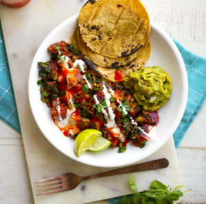 • Scoop the bean mixture into serving bowls and serve alongside the guac or avocado - and the warmed tortillas.