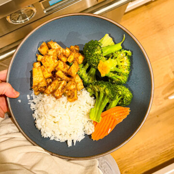 I serve this Five Ingredient Peanut Butter Tofu with steamed broccoli - seasoned with nutritional yeast and some salt or more liquid aminos. And on the side, some fluffy white or brown rice - or even pasta or quinoa would work well!