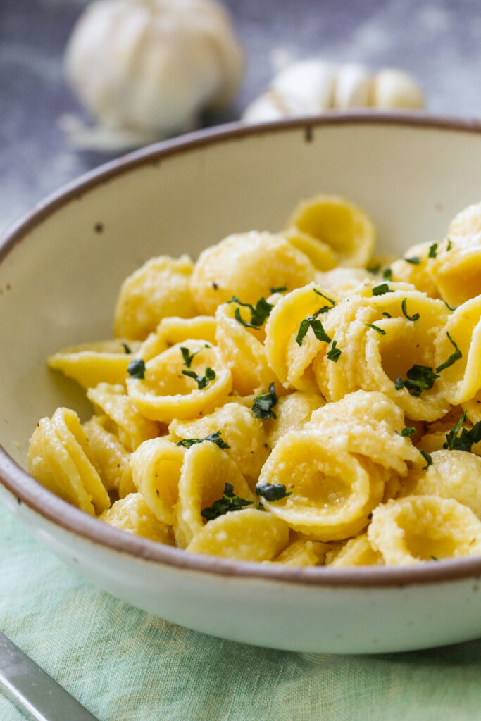 But if you use chilled roasted garlic, you will need to warm it a bit before adding to your pasta. A quick tutorial on freezing garlic is here on the Kitchn.