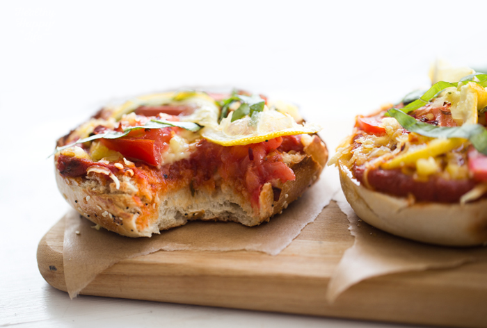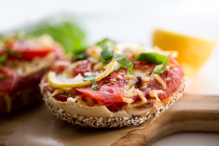 Toasty warm and blissfully lemony. These remind me of being a college student slathering marinara sauce on top of not-so-amazing store bought bagels. But the real secret to "pizza bagel success" is starting with amazing quality, fresh bagels.