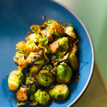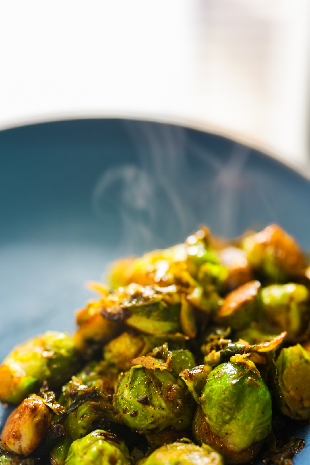 They’re easily one of my top five vegetables, and yet, I rarely make them. I think people forget how ridiculously easy Brussels sprouts are to cook. You don’t need an elaborate recipe or a half-hour roasting session. In five to ten minutes, you can have the most savory, caramelized, glossy Brussels sprouts ready to go.