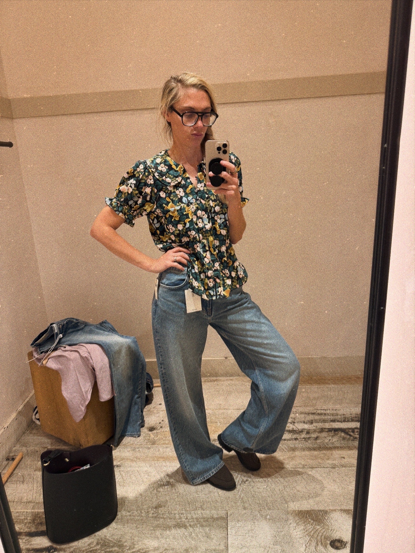 I had a dentist appointment (I oddly enjoyed sitting and doing nothing for an hour), but afterwards, I decided to lean into a little me time before school pickup. So I headed over to the mall..which honestly felt indulgent in itself. I wandered straight into Anthropologie. And let me just say: I cannot believe how expensive jeans have become. The cheapest pair was around $150, and most were hovering near or above $250. Wild. But here’s the thing .. I am the kind of person who will absolutely wear $250 jeans with a $10 white T-shirt and call it a day.