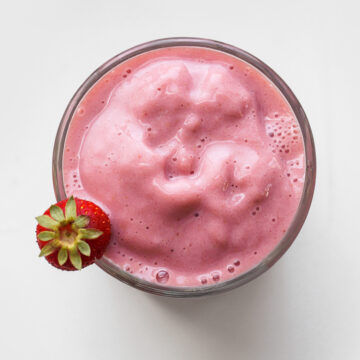 This Strawberry Banana Smoothie recipe serves two, but could easily be consumed by one person.