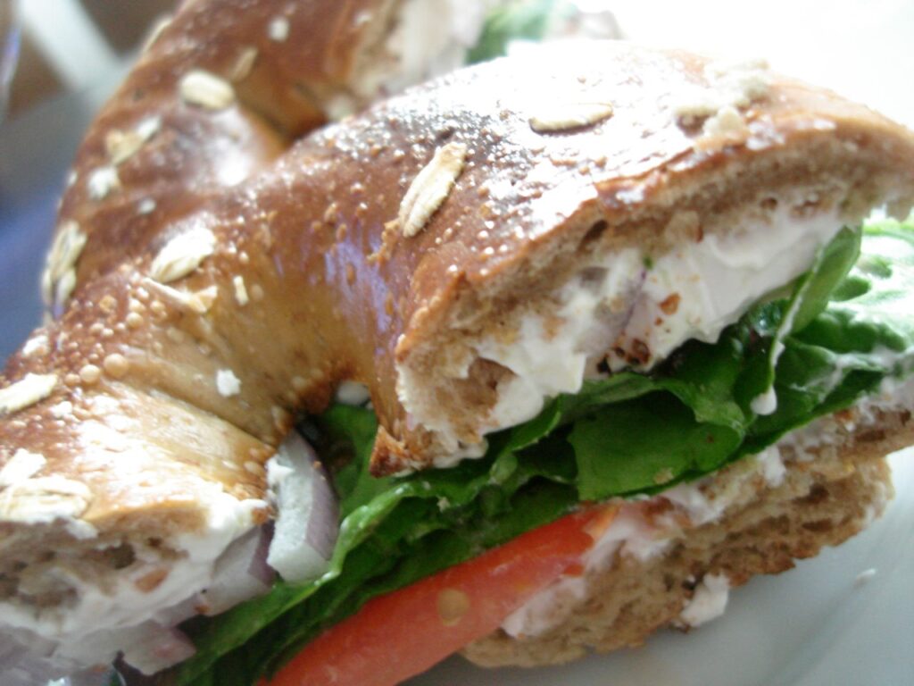 There are so many ways to turn a simple bagel into a hearty sandwich. I love cream cheese from Kite Hill. Veggies, avocado, a sprinkle or nuts or seeds, spices and lemon juice. So many options!