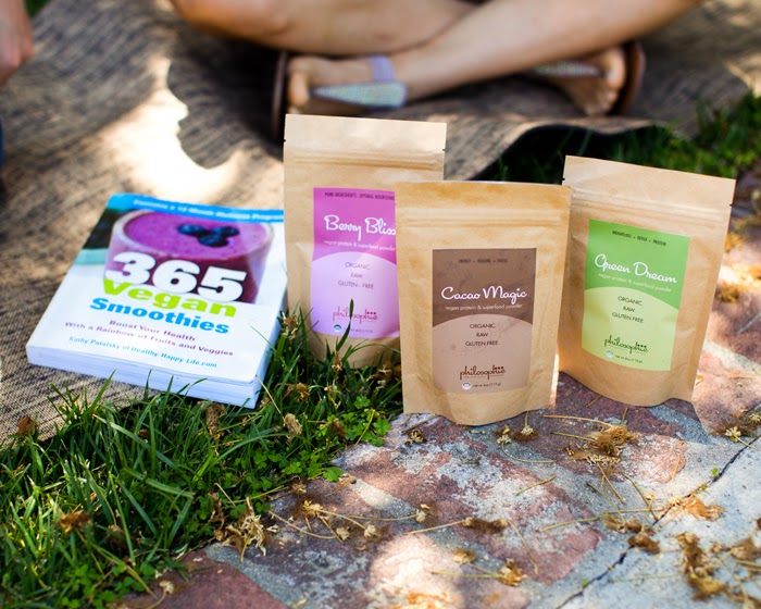 Giveaway. After watching all three videos I know you will be aching to try Sophie's blends! Well I have a super giveaway for you guys today. The winner will receive all three of the Philosophie superfoods (sampler pack!) plus my book 365 Vegan Smoothies, a Healthy Happy Life tee, a $30 Whole Foods gift card to pay for your smoothie goodies. Total value of over $100 in smoothie goodies.