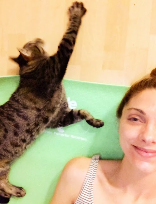 Win a Dole Yoga Mat + Copy of 365 Vegan Smoothies! Little mini giveaway for you guys who are continuing to strive for wellness in 2015! Enter to receive a bright green, totally energizing Dole Salads Yoga Mat + a copy of my book 365 Vegan Smoothies + a handful of salad and banana coupons .. because free bananas are always a good thing! Here is the yoga mat, my kitties use it just as much as me.. Entry form at bottom of post!