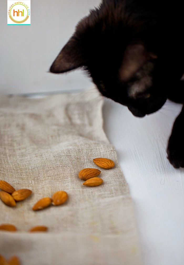 Mr.White was curious about these almonds, I mean anything to bat at for no reason is a toy, right? Don't worry I didn't let him try to eat one.