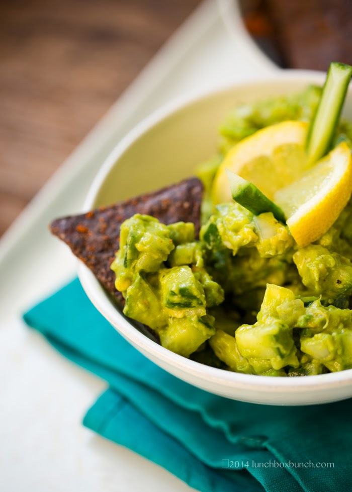 Super Cool. Another reason I love this recipe is that by adding chilled cucumbers to your fresh bowl of guacamole, you can actually help keep it cool, helpful if you are serving it on a hot day or outside for a summer picnic or event.