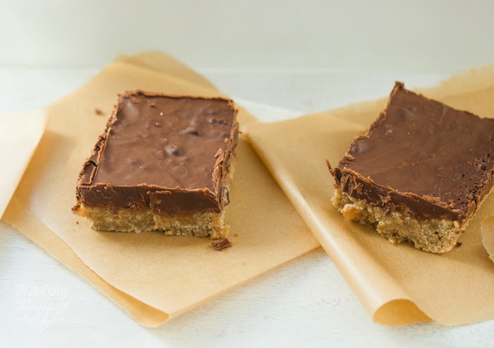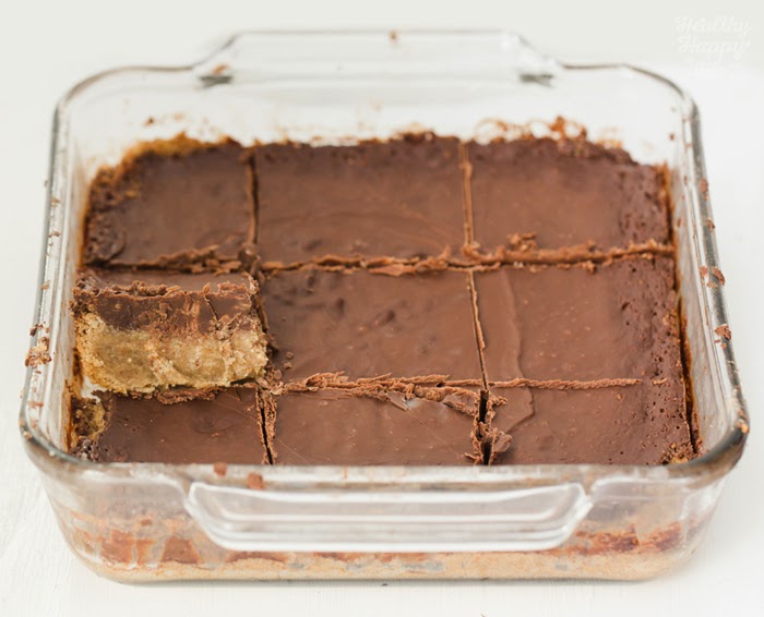 O. M. G. Words cannot describe how good these are. I did do them a little bit differently; I lined the pan with parchment paper crisscrossed for easy removal and I baked the base without the chocolate until lightly golden then when they cooled I poured the chocolate over (I also sprinkled half with coarse grey Maldon sea salt) and popped them in the fridge. The next morning I let the chocolate warm a little and cut them into pieces using a hot knife wiped clean between cuts to keep them pretty. The chocolate is beautiful, smooth and shiny. They truly look look like something out of a magazine and taste even better. This one's a keeper.
