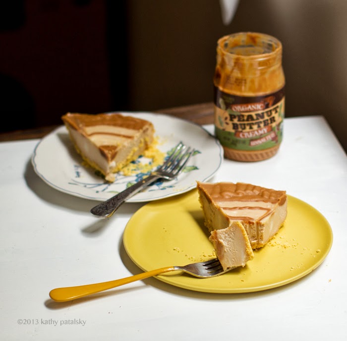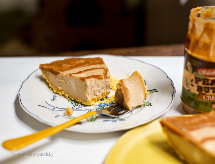 So I'm kinda in crazy-busy mode this afternoon as I pack, run errands, confirm travel plans and pamper my kitty as much as possible because she gets so sad when I leave her. And today, just before I fly out the door I am sharing something I know you all will love. My Triple Peanut Butter Swirl Vegan Cheesecake...