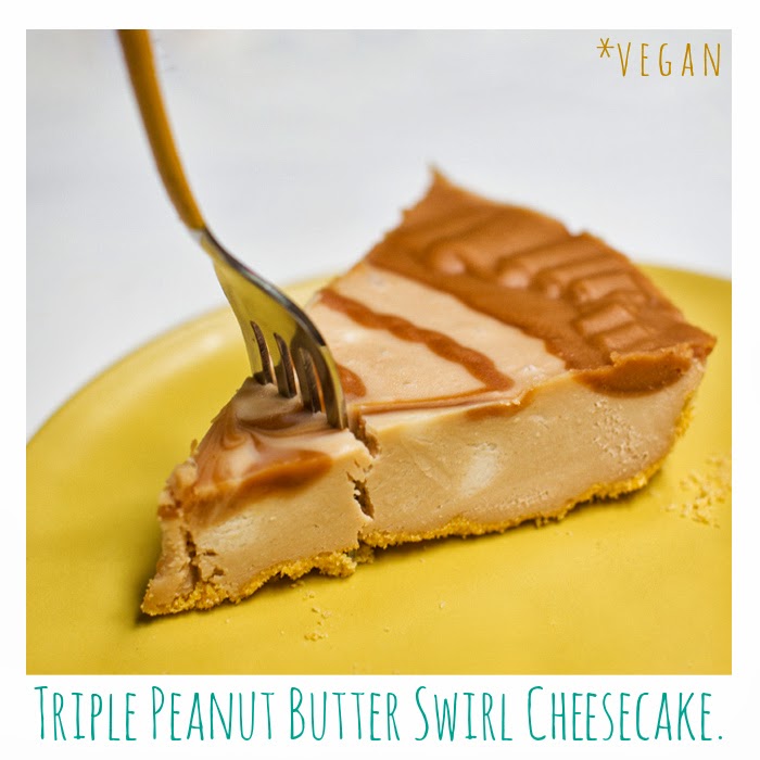 Triple Peanut Butter Swirl Vegan Cheesecake